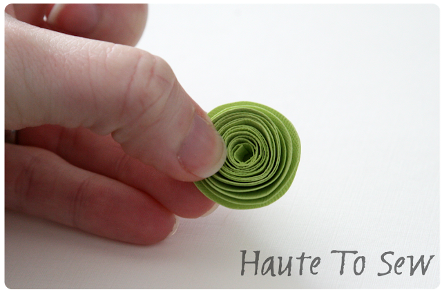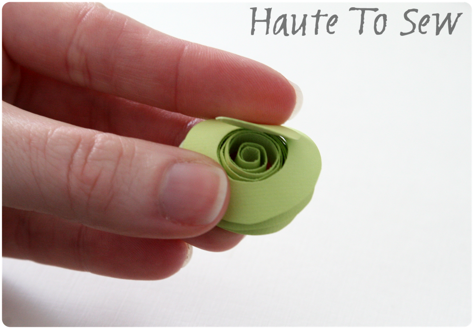 Once you get the size how you would like, put some hot glue under that little circle from the middle of your spiral. That circle makes a base for the flower.